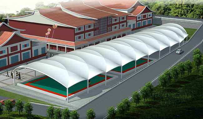 Sports facilities in the membrane structure of tarpaulin material is PVC, PVDF, PTFE polyester class, and the characteristics of the membrane material is high strength, good durability, fire flame retardant, good self-cleaning, is not affected by ultraviolet (uv) light, long service life, general 15 to 30 years.