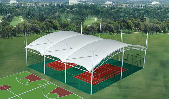 Sports facilities in the membrane structure of tarpaulin material is PVC, PVDF, PTFE polyester class, and the characteristics of the membrane material is high strength, good durability, fire flame retardant, good self-cleaning, is not affected by ultraviolet (uv) light, long service life, general 15 to 30 years.