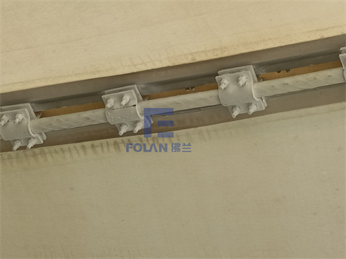 厦门希平幼儿园中庭膜结构,佛兰空间项目组人员通过会议讨论,决定采用U型箍套、镀锌PE索、锚头等构件固定膜材。首先在节点板上焊接套管,套管下面垫块垫板,增加一点高度,然后PE索穿过套管,最后扭紧螺母收膜边。