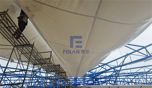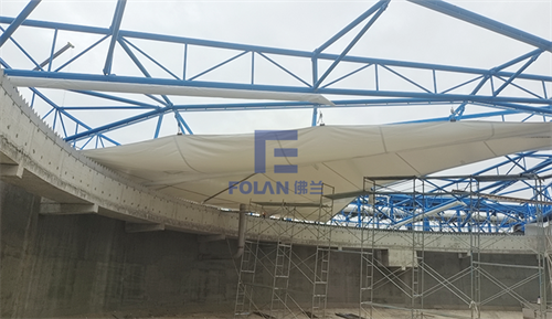 经设计核算,福建某污水池加盖项目,采用海德斯白色PVDF膜材,抗腐蚀抗酸碱,抗拉强度约8000N/cm。