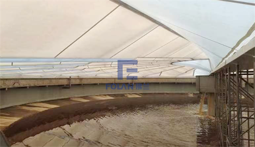 福建某污水池加盖项目,包含4个直径60米的初沉池和2个直径36米的污泥浓缩池,膜安装面积达16000多平方米。