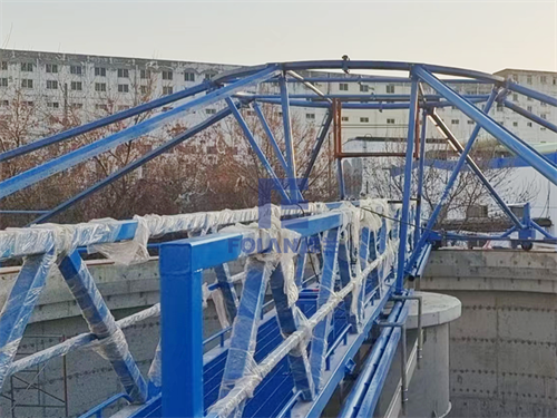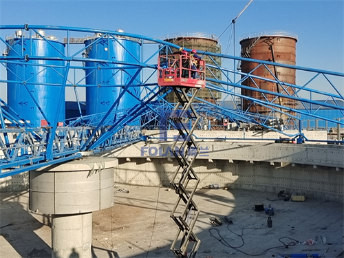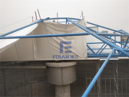 考虑到圆形池能够依靠周边传动推动集气罩运行,佛兰空间为其设计了随动式污水池反吊膜加盖方案。