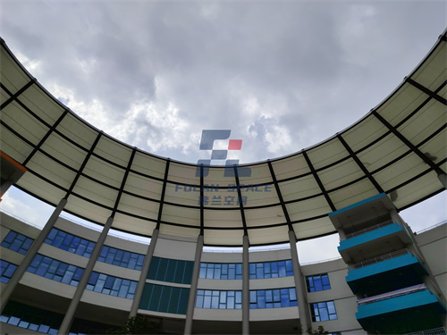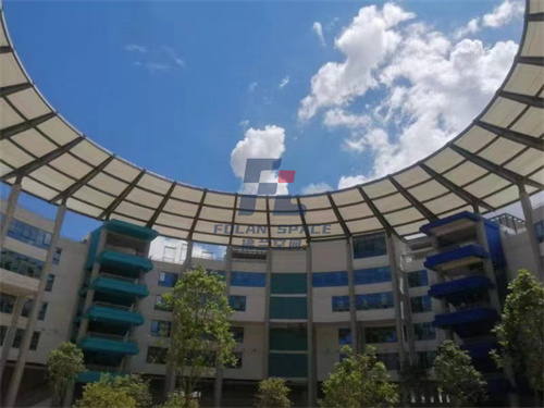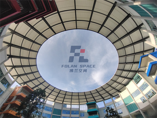 该学校天幕使用的是PVDF高透光膜材,无论白天还是夜晚,都可以透过它看到天空,是名副其实的天幕。这种高透光性使得天幕在白天能够提供充足的自然光照,而在夜晚则可以与灯光结合,营造出绚丽的视觉效果。
