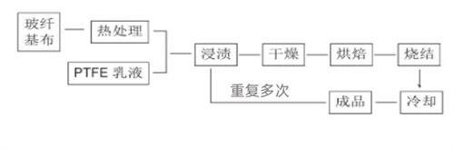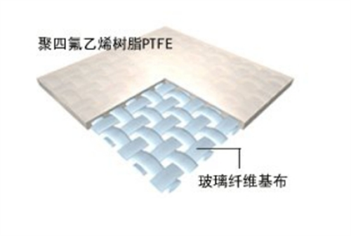 经过浸渍后,玻纤布表面涂上了薄薄一层氟树脂,再经过干燥、烘焙、烧结等工序,达到玻纤布与PTFE牢固结合的目的,成为一种既具玻纤特性,又有PTFE诸多优异性能的新型材料。