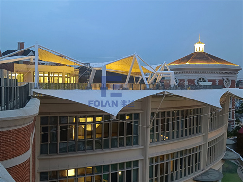 ▲佛兰空间项目:厦门幼儿园扇形中庭膜结构工程(PTFE膜材)