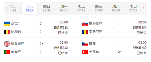 F组中,格鲁吉亚2-0葡萄牙,积分方面,葡萄牙6分头名出线,格鲁吉亚4分小组第三出线。土耳其2-1捷克,土耳其积6分位列小组第二出线,1/8决赛将迎战D组头名奥地利,捷克积1分垫底出局。