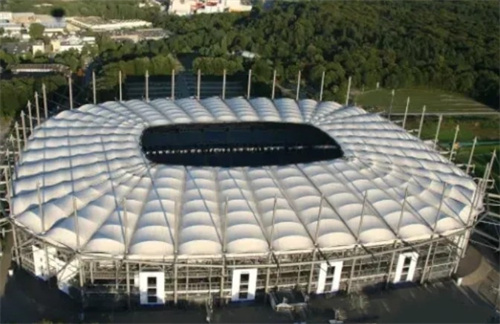 屋顶更换了全新的法拉利1302S PVC膜,在二次结构支撑下,呈现出优雅的双曲面形状。它不仅具有卓越的防水、隔热性能,更为整个体育场增添了一抹亮丽的风景线。