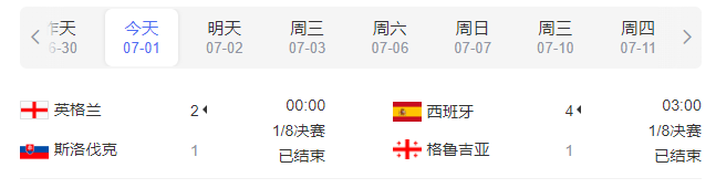 6月26日:英格兰vs斯洛文尼亚(3:00)