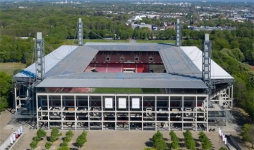 科隆莱茵能源球场(RheinEnergieStadion)位于科隆,是科隆足球俱乐部的主场,可容纳约50,000名观众。该场馆最早建于1923年,经过多次翻新和改造,现已成为一座现代化的体育场。